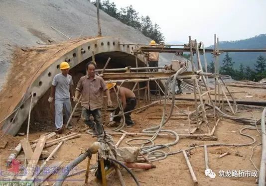 1.概念及构造组成:开挖前用5~10cm厚喷混凝土将开挖面和5m范围内隧道封闭;然后沿隧道周边打入带孔的纵向小导管;由上而下向小导管内压浆,渗透到地层中;浆液硬化后,在隧道周围形成一个加固圈;在此加固圈防护下安全开挖。