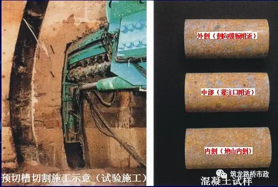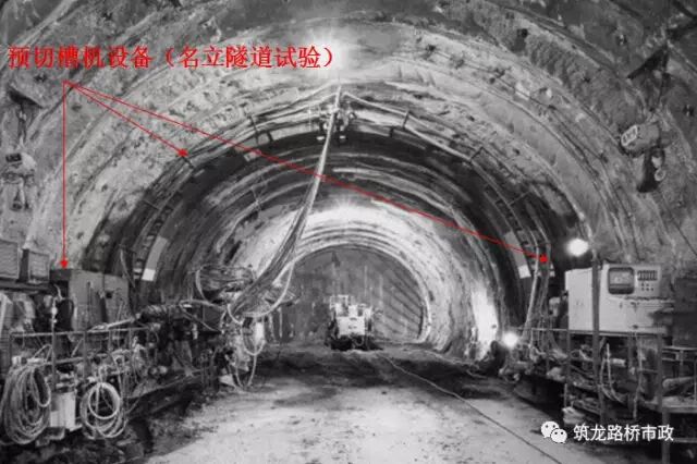 用预切槽机沿隧道横断面周边预先切割或钻出一条有限宽度的沟槽,进行预衬砌,方式有带锯式和排钻式两种。