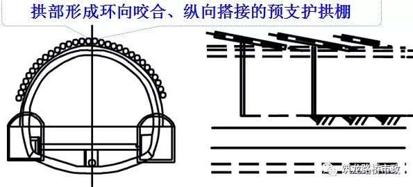 ●工艺:设置管棚基底-水平钻孔-压(打)入钢管-开挖