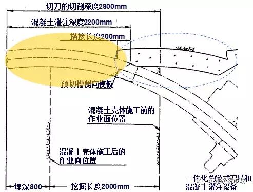 (1)由于预槽开挖和混凝土灌注同时完成,避免了导致土层应变的应力释放。