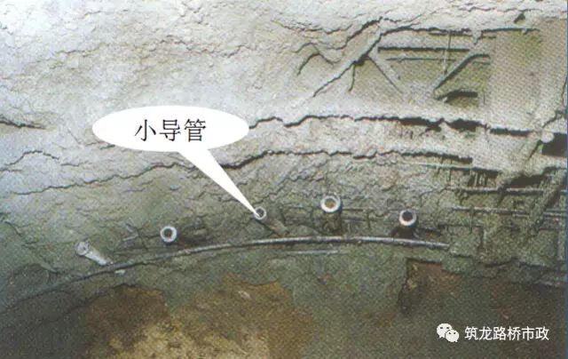 ●小导管应外露一定长度,以连接注浆管,并用塑胶泥封堵导管周围孔隙