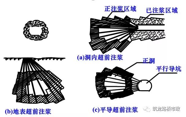 1.概念:在掌子面前方的围岩中注浆,提高地层强度和稳定性,降低渗透性,形成较大范围筒状封闭加固区,在其范围内进行开挖作业。