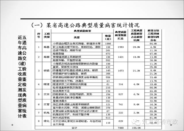 质监站在高速公路项目的交工质量检测和竣工质量鉴定中,总结出了海量路桥隧工程在质量方面存在的问题,并且对近五年通车高速公路工程质量状况进行了全面的数据分析,赶紧好好看看!工程竣工验收就靠这了!